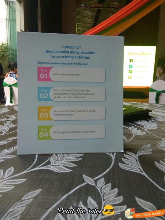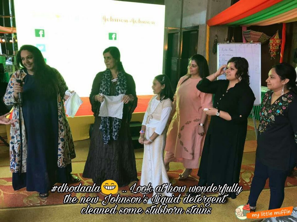 Johnson’ India has launched a new Baby friendly detergent liquid. So much cheer, so much energy in the room just to clean a piece of cloth and hit the buzzer. Water splashed all over the table and our clothes. But do you think that could stop from putting our heart into washing the cloth. We were really surprised at the result, since we put the different types of stubborn stains on it before cleaning it.
