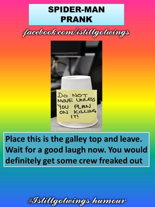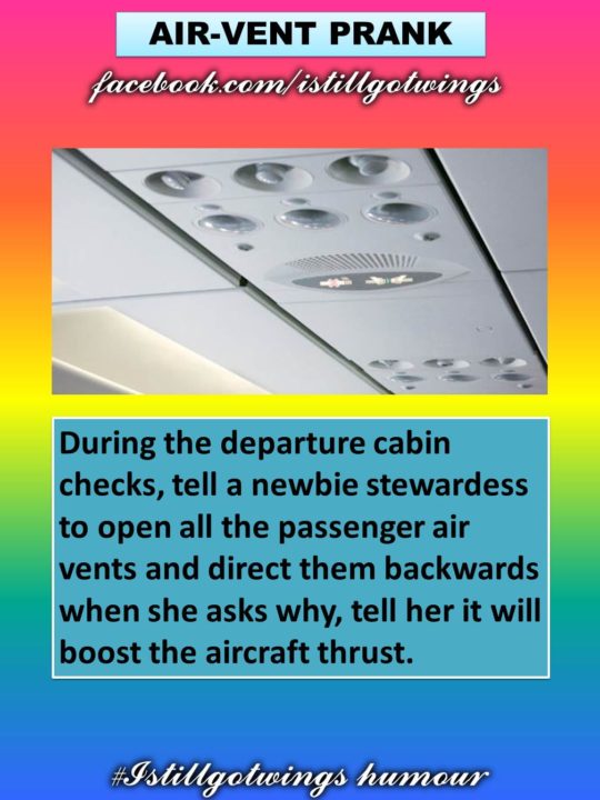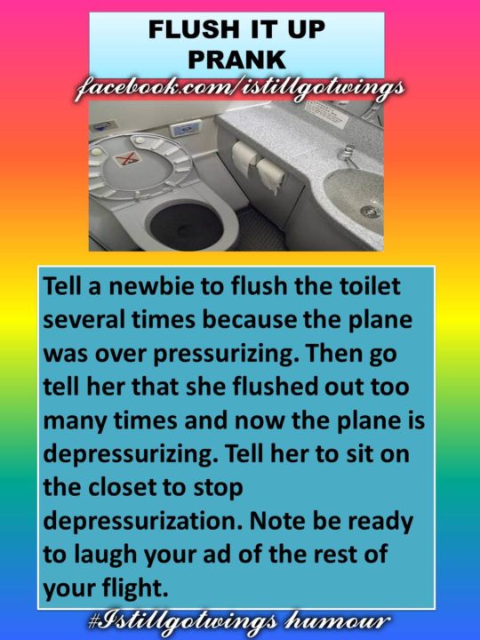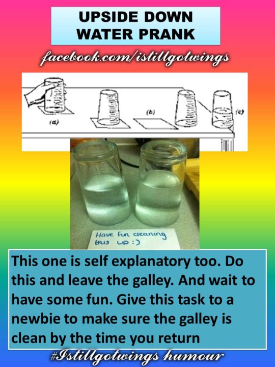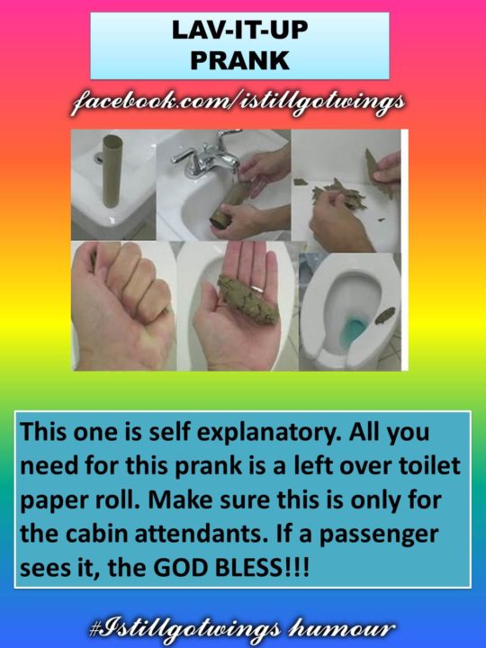 Here are some of my favorite pranks that we can play on board ( keeping in mind the safety and security of the passengers and crew. These Just for Fun and would urge all to take it in a fun stride.