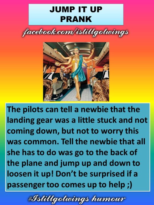 With the April fools day arriving, it urges me to write about my favorite topic, practical jokes, that a flight attendant can use to pep up her day 😉