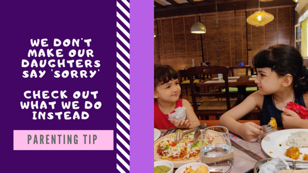 The word ‘Sorry’ according to most of us means to make the child regret for what she has done ( which isn’t the case often, and is perfectly normal in a typical case).